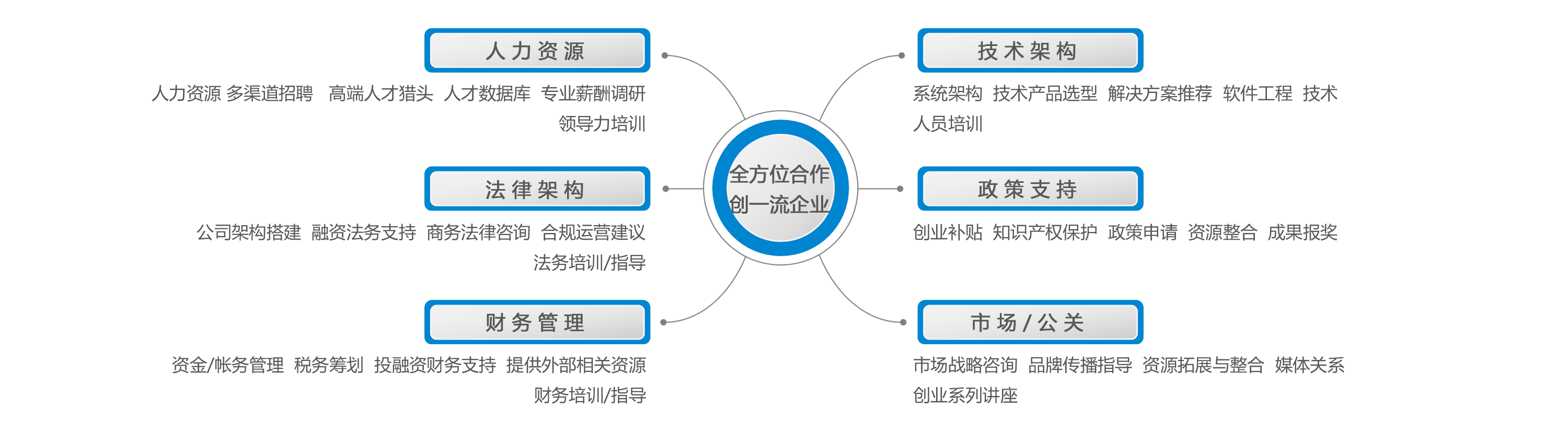 經評審合格入駐的創業企業和創業項目可享受全套創業服務和創業輔導平臺: