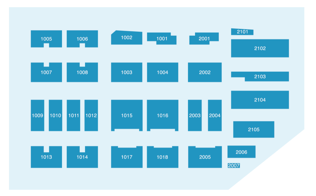 園區配備標準化廠房區包含的單體: 研發辦公樓 (1棟) 、生產車間、B1及B2標準廠房:C1、C2、C4標準廠房(各2棟) 、C3標準廠房 (4棟) : D1分揀車間 (2棟) ;D2、D3分揀車間;公用站房1~2及架空車庫1~4.園區已定制廠房包括的單體: 研發辦公樓 (1棟) : B3標準廠房: C3標準廠房 (2棟) : D4分揀車間: F4標準廠房;公用站房3及架空車庫5,以及定制廠房的主要單體: 定制廠房1~2;倉庫;綜合樓;公用站房4;門衛。