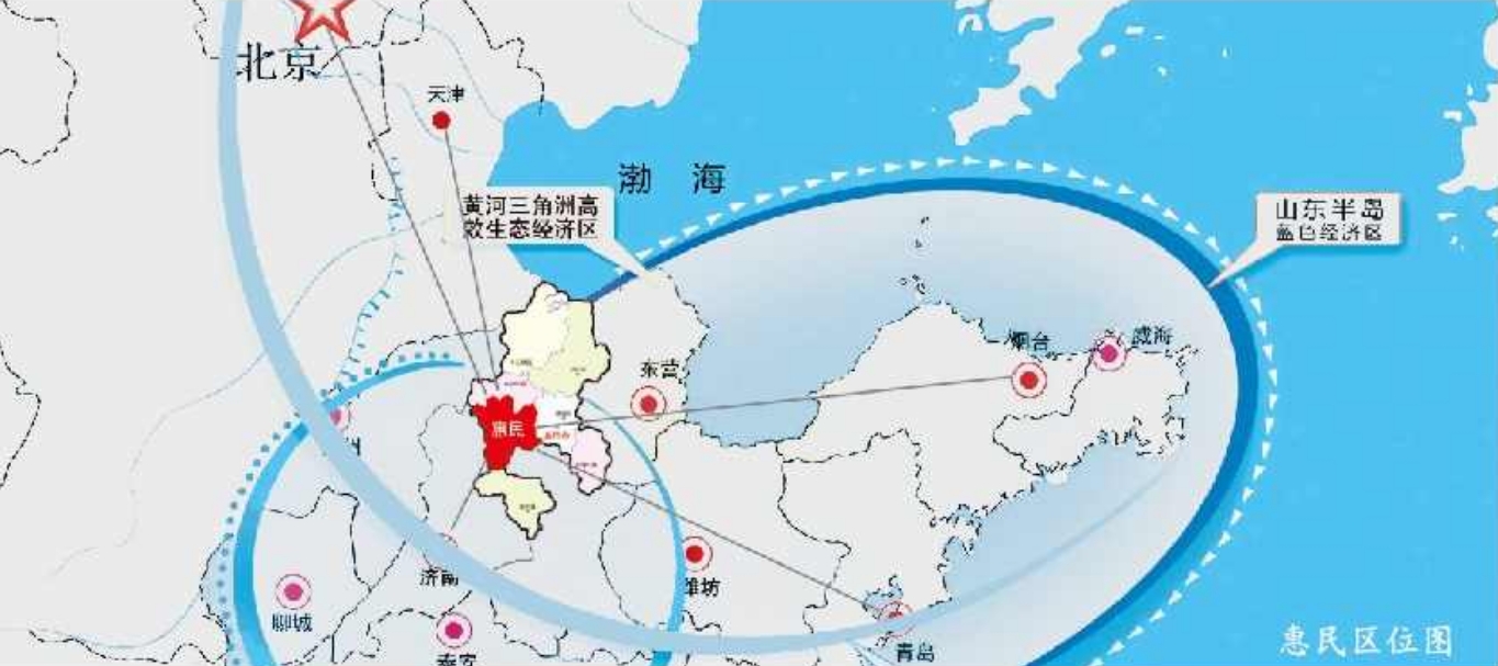 惠民縣隸屬山東省濱州市,地處魯西北平原,東鄰濱州市濱城區,西接濟南市商河縣、濟陽區。濱州市“一主三副”中心城區架構的西部副城,境內路網發達、交通便利,3條國道、3條省道、德大鐵路、東呂高速穿境而過,毗鄰國家一級開放口岸黃驊港和濱州港;濟濱高鐵、慶章高速、高商高速已開工建設,項目建成后形成7分鐘到濱州市中心、25分鐘到濟南機場、1小時到北京、3小時到上海的快速交通網。
