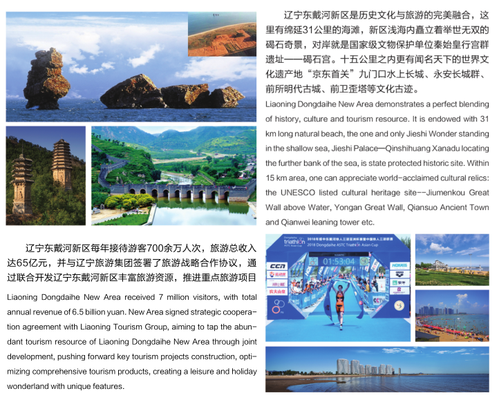 遼寧東戴河新區是歷史文化與旅游的完美融合,這里有綿延31公里的海灘,新區淺海內矗立著舉世無雙的喝石奇景,對岸就是國家級文物保護單位秦始皇行宮群遺址一一碣石宮。十五公里之內更有聞名天下的世界文化遺產地“京東首關”九門口水上長城、永安長城群前所明代古城、前衛歪塔等文化古跡。