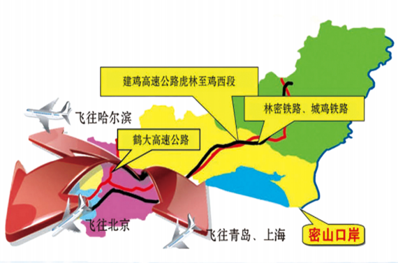 開發區交通便利,林東鐵路橫貫東西,密山西火車站坐落于開發區內,公路交通四通八達,有方虎公路、密當公路、七密公路3條省級公路和建雞高速連接東西南北,開發區距離雞西機場63公里。