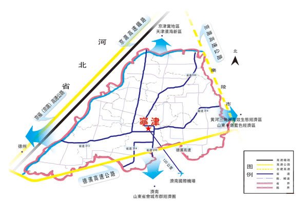 寧津縣地處京津石濟大城市圈中心地帶,北鄰天津濱海新區、南靠省會城市經濟圈、東接黃河三角洲高效生態經濟區,是連接天津濱海新區、黃河三角洲、山東半島藍色經濟區、遼寧沿海經濟帶、京津冀協同發展區、遼寧沿海經濟帶中部地區、山東省會城市群中國北方八大經濟板塊的重要樞紐,是山東省西部經濟崛起戰略中的區域性中心城市,是黃三角、藍色半島經濟區、環渤海與西北腹地能源基地鏈接的重要節點。1.北距北京300公里、天津200公里,西距石家莊240公里,南距濟南120公里。