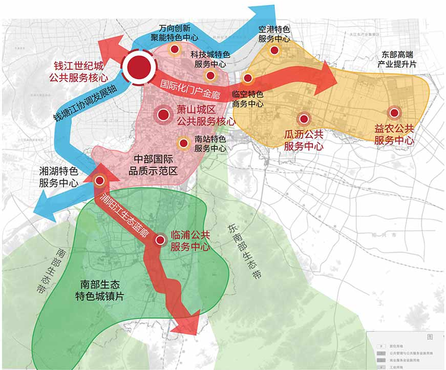 蕭山區(qū)形成“一軸統(tǒng)兩廊、兩核聯(lián)多心、兩帶嵌三片”的空間結(jié)構(gòu)