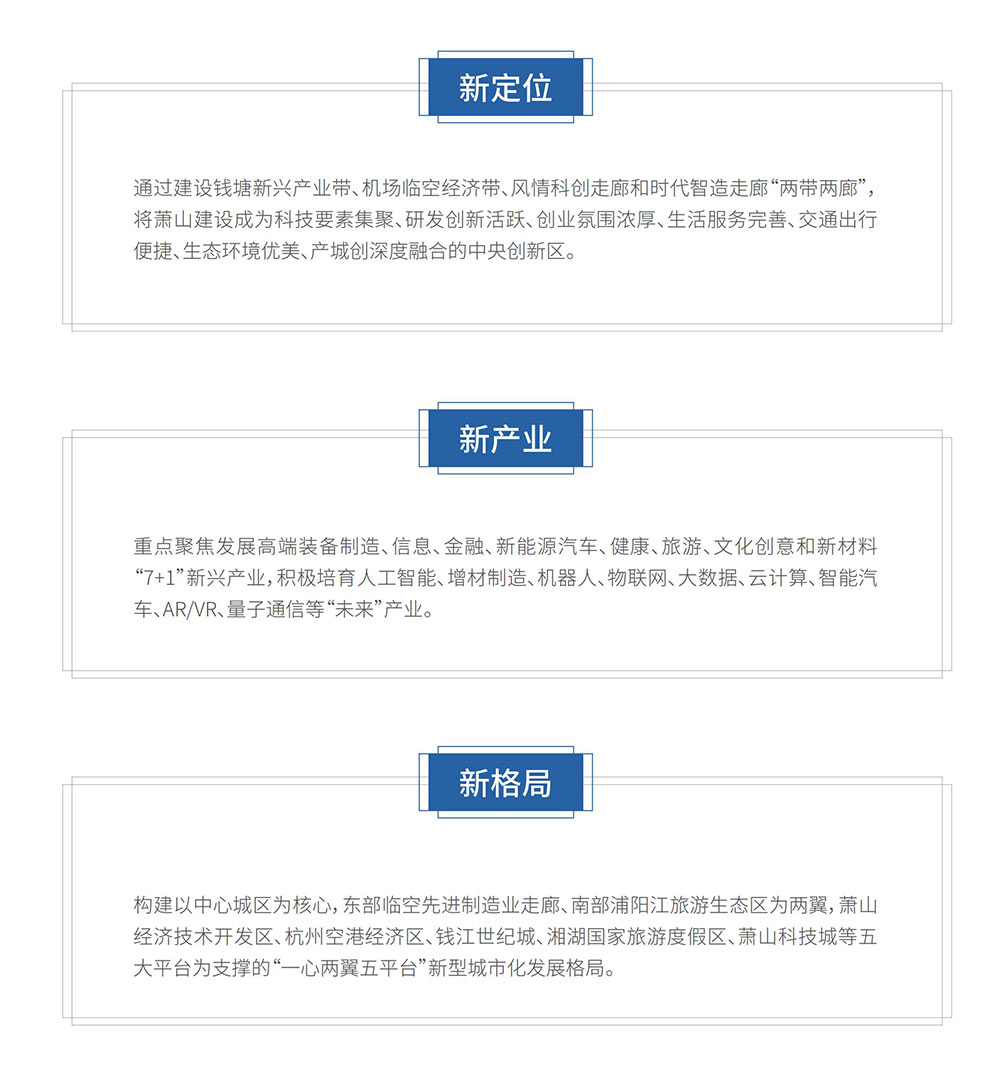 區(qū)位優(yōu)勢:主要依托杭州機場及空港經(jīng)濟引領(lǐng)帶動;沿機場快速路,西起市心路東至益農(nóng)鎮(zhèn);產(chǎn)業(yè)總部+研發(fā)總部+產(chǎn)業(yè)化基地。