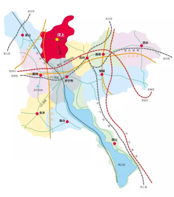 汶上處于京津冀、環(huán)渤海、長(zhǎng)三角經(jīng)濟(jì)圈的中間地帶,交通發(fā)達(dá),物流系統(tǒng)完善,周邊地區(qū)是中國(guó)經(jīng)濟(jì)最為活躍的區(qū)域,擁有最為廣闊的市場(chǎng)空間。目前,汶上已形成快捷便利的立體化交通網(wǎng)絡(luò)。汶上東距京滬鐵路兗州站30公里,距京滬高鐵曲阜東站50公里,西距京九鐵路梁山站40公里,南距兗菏鐵路濟(jì)寧站35公里。由曲阜高鐵東站乘坐高鐵2小時(shí)內(nèi)可到達(dá)北京、天津、青島、南京等城市,3小時(shí)到達(dá)無(wú)錫、蘇州、上海、杭州等城市。日蘭高速、濟(jì)廣高速、濟(jì)徐高速三條高速公路穿越縣境,有濟(jì)徐高速汶上西、汶上南,日東高速濟(jì)寧北3個(gè)高速出入口,105國(guó)道縱貫?zāi)媳薄?h城距濟(jì)南機(jī)場(chǎng)140公里,距濟(jì)寧機(jī)場(chǎng)40公里。距青島港350公里,距日照港230公里,距京杭大運(yùn)河濟(jì)寧碼頭40公里、汶上南旺碼頭20公里。