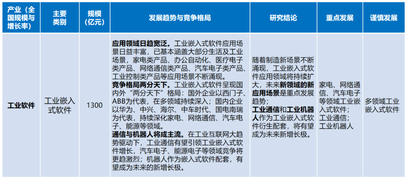 工業(yè)嵌入式軟件。隨著制造新場(chǎng)景不斷涌現(xiàn),工業(yè)嵌入式軟件應(yīng)用領(lǐng)域?qū)⒊掷m(xù)擴(kuò)大,未來(lái)新領(lǐng)域的新應(yīng)用場(chǎng)景是重點(diǎn)發(fā)展趨勢(shì);工業(yè)通信和工業(yè)機(jī)器人作為工業(yè)嵌入式軟件衍生配套,將有望成為未來(lái)新增長(zhǎng)極。