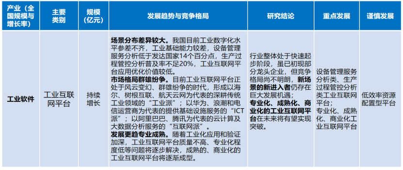 工業(yè)互聯(lián)網(wǎng)平臺(tái)。行業(yè)整體處于快速起步階段,雖已初現(xiàn)部分龍頭企業(yè),但競(jìng)爭(zhēng)格局尚不明朗,新場(chǎng)景的新進(jìn)入者仍存在巨大發(fā)展機(jī)遇;專業(yè)化、成熟化、商業(yè)化的工業(yè)互聯(lián)網(wǎng)平臺(tái)在未來(lái)將有望實(shí)現(xiàn)突破。