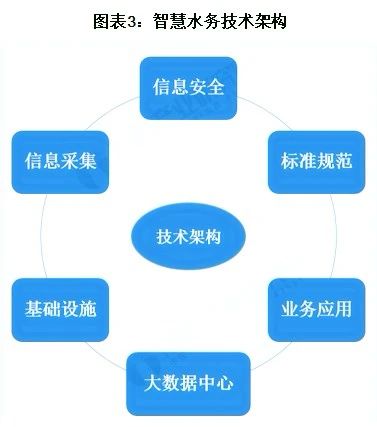 智慧水務的技術架構包括信息安全、標準規范、業務應用、大數據重心、信息采集和基礎設施。其中,信息采集是智慧水務“感覺系統”,助力監測網絡對涉水對象及其環境信息的感知和接受。