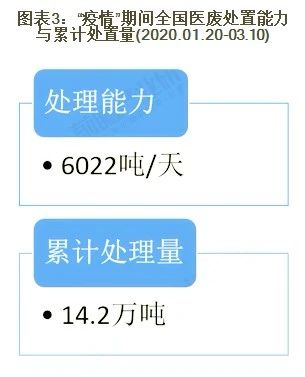 2020年,自1月20日新型冠狀病毒疫情爆發以來,全國各地的醫廢產生量急速增加,截止至2020年3月10日,全國醫療廢物處置能力為6022噸/天,較疫情前提高了23%;累計處置醫療廢物約14.2萬噸,約占2018年大中城市醫廢處置量的17.4%。