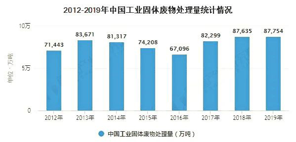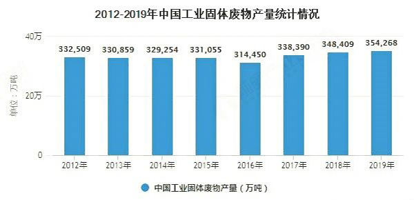 1、2019年中國工業(yè)固體廢物產(chǎn)量小幅增加