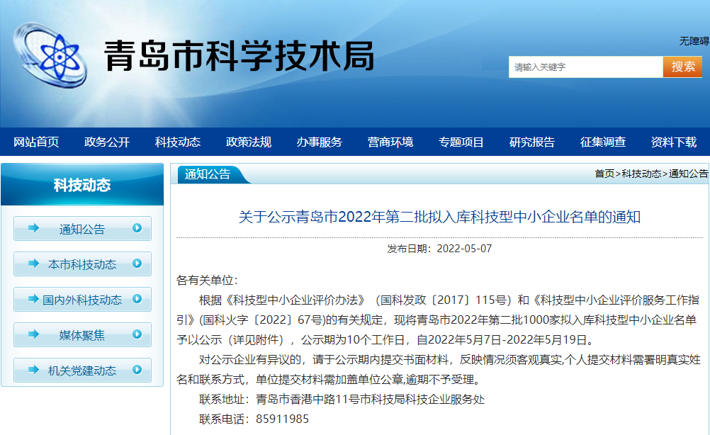 近日,青島市科技局公示了2022年首批進入科技型中小企業的名單,綠天使多家園區企業順利通過青島市科技局認定,成功入庫。
