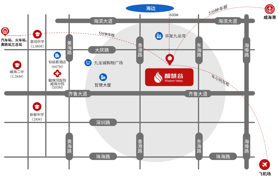 智慧谷是威海經濟技術開發區傾力打造的高端產業園區,以“四新”經濟為引領,打造新興產業聚集高地 ,是深入推進山東省新舊動能轉換重大工程實施的一項重要戰略舉措,也是國家服務貿易創新發展試點地區中打造的首個服務貿易實體園區。園區位于威海經濟技術開發區核心地段,總占地516畝,總建筑面積126萬平方米,總投資80億元。重點發展科技研發、服務外包、信息技術、電子商務、總部經濟五大產業。截至目前,園區通過政策服務平臺共培育省級瞪羚企業2家,高新技術企業42家,國家科技型中小企業101家,省市級以上“專精特新”企業22家,省市級一企一技術研發中心12家,省市級新型研發機構5家,工程技術研究中心10家,市級技術創新中心1家,市級重點實驗室4家,區級工業設計中心2家。