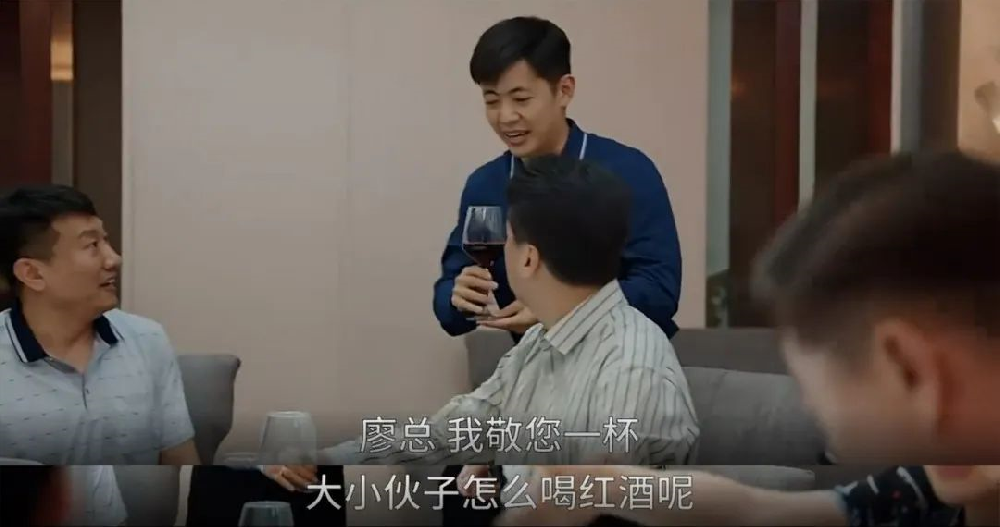 宴會上眾人還未坐穩,小趙便不合時宜地以紅酒敬手拿白酒的廖總,惹得廖總稍有不快。此處小趙犯了兩個錯誤:其一,在主要人物未講完話便開始敬酒,打亂節奏,不按規則出牌,這便是不合時宜;其次,以手持紅酒敬手持白酒的廖總,酒不匹配就更不合適了。隨后小趙更是一不小心將紅酒撒了廖總一身,現場氣氛直接尷尬。