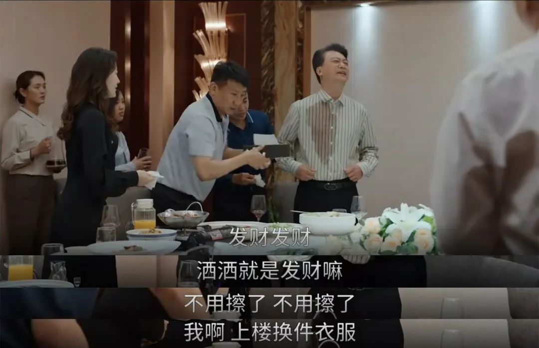 廖總也是久經沙場,彰顯了企業家該有的氣度,用“灑灑就是發財”這句話幫助光明縣眾人緩解尷尬,又以自己換衣服為借口迅速離開,緩和一下自己的心情和現場的氣氛。