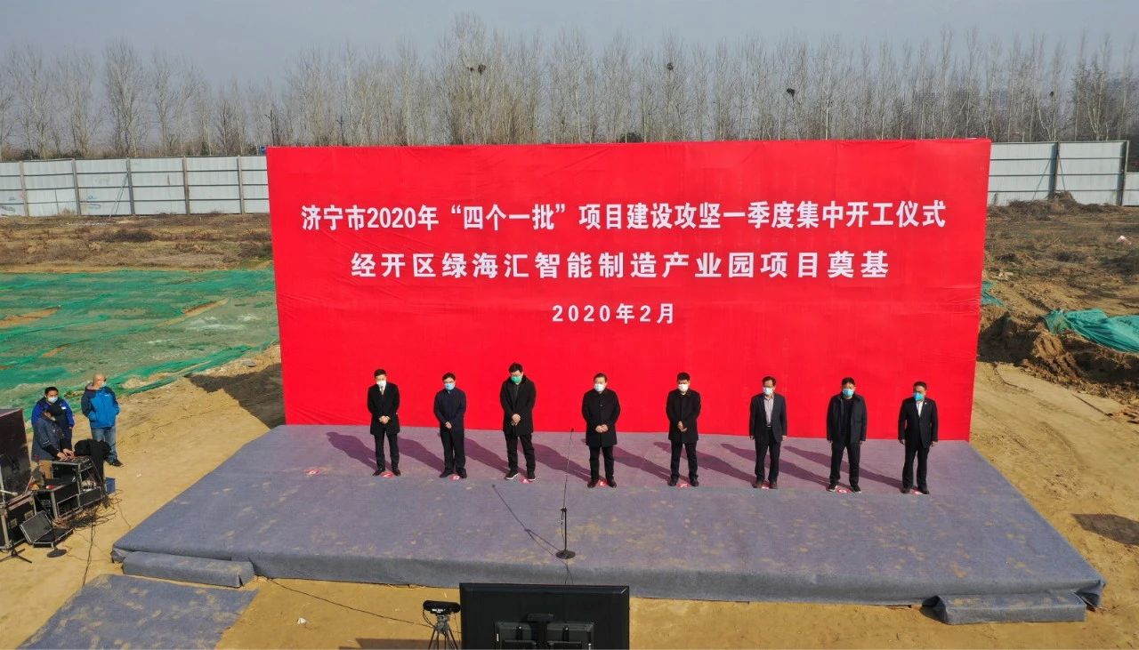 2020年2月20日,濟寧市舉行2020年“四個一批”項目建設攻堅一季度集中開工儀式。儀式采取“主會場+項目現場視頻連線”方式進行。市委副書記、市長石光亮在主會場講話并宣布項目開工,市政協主席張繼民出席。開工儀式上,綠海匯(濟寧)智能制造產業園奠基開工。濟寧市經濟開發區黨工委書記李金禮出席綠海匯(濟寧)智能制造產業園現場奠基儀式并致辭,濟寧商貿物流園區主任李家鵬,濟寧經濟技術開發區黨工委委員、管委會副主任李朋,濟寧經濟技術開發區黨工委委員、紀工委書記張奇,濟寧經濟技術開發區管委會副主任劉前,濟寧商貿物流園區副主任魏慶水,綠海匯總經理王瑞強參加現場奠基儀式。