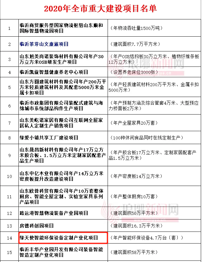 近日,臨沂市公布2020年第一批重大建設(shè)項目名單,各級各部門要按照“重點工作攻堅年”、“重大項目突破年”的部署要求,牢固樹立“項目為王”理念,在抓好疫情防控的前提下,一切圍繞項目轉(zhuǎn)、一切圍繞項目干,強化項目調(diào)研謀劃,推動儲備項目早落地,開工項目快建設(shè),竣工項目快投產(chǎn),形成重大項目滾動接續(xù)格局。綠天使(臨沂)產(chǎn)業(yè)園有限公司智能環(huán)保設(shè)備定制產(chǎn)業(yè)化項目位列其中。