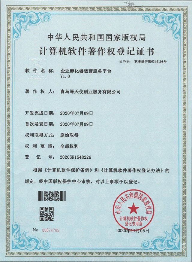 近日,綠天使自主設計與研發的三款軟件產品——“企業管理咨詢綜合服務系統”、“綠天使招商管理云平臺V1.0”、“企業孵化器運營服務平臺V1.0”——獲得國家版權局計算機軟件著作權登記證書。