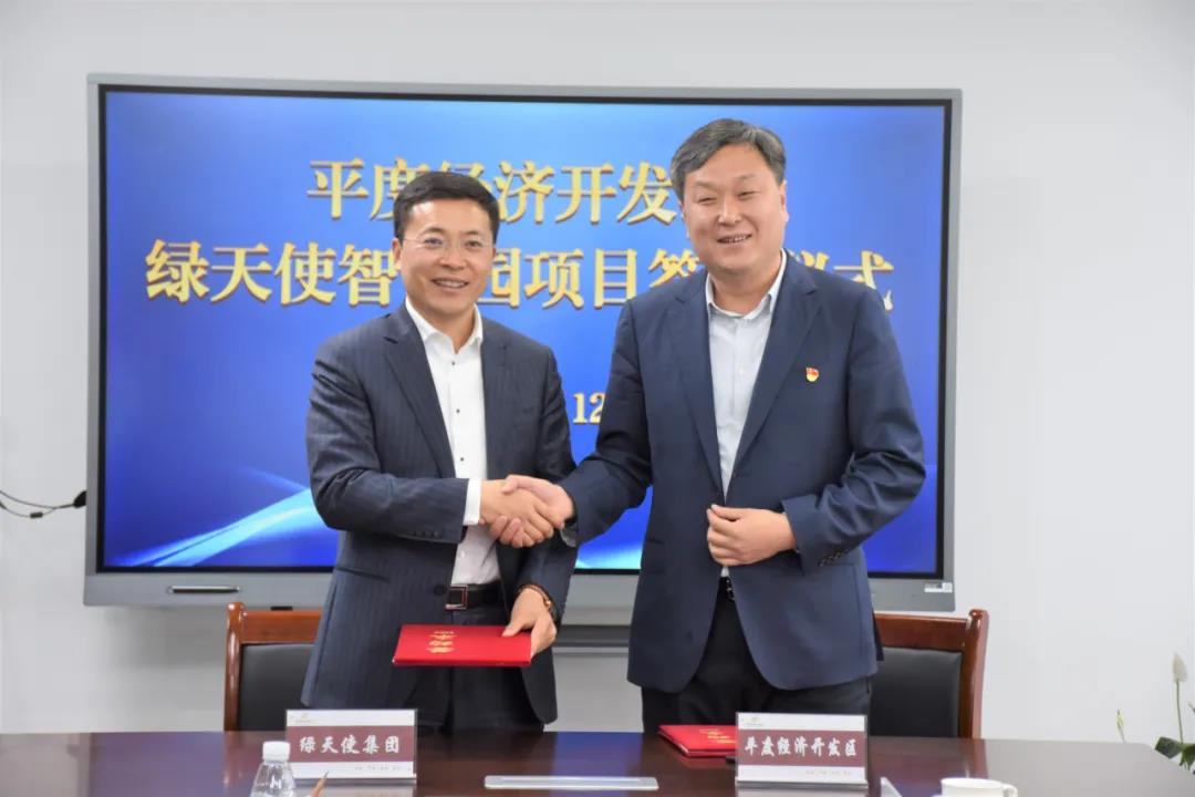 5月12日上午,綠天使智創園項目簽約儀式在經濟開發區管委2203會議室舉行。經濟開發區黨工委書記、管委會主任、鳳臺街道黨工委書記周才和山東綠天使科技發展集團有限公司董事長王瑞強共同簽署項目合作協議。中建國際投資山東有限公司、青島碧清藍環保設備有限公司負責人參加了儀式。