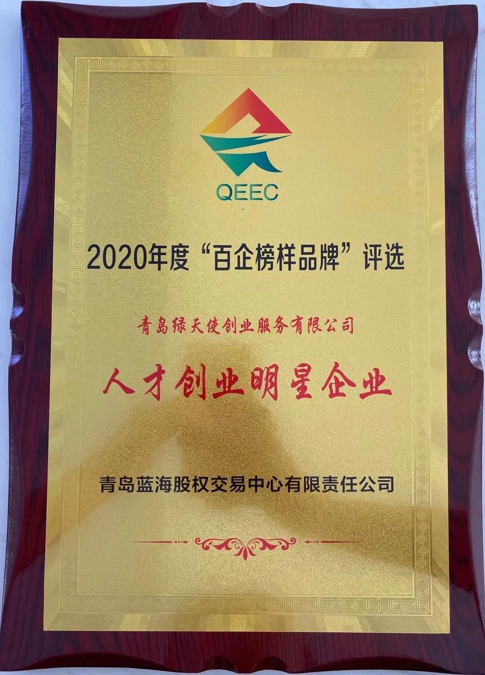 近日,青島藍海股權交易中心第六屆“藍海風云榜”之2020年度“百企榜樣品牌”企業評選工作圓滿結束。綠天使集團子公司青島綠天使創業服務有限公司榮獲人才創業明星企業稱號。