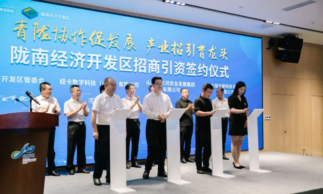 近日,以“青隴協(xié)作促發(fā)展·產(chǎn)業(yè)引進育龍頭”為主題的隴南經(jīng)濟開發(fā)區(qū)產(chǎn)業(yè)招商暨項目簽約大會在青島市自貿(mào)區(qū)舉行。隴南經(jīng)濟開發(fā)區(qū)黨工委書記、管委會主任馬文鋒、隴南市政協(xié)副主席、青島市政府副秘書長武福成、綠天使集團運營總監(jiān)姜琳琳等出席簽約儀式。