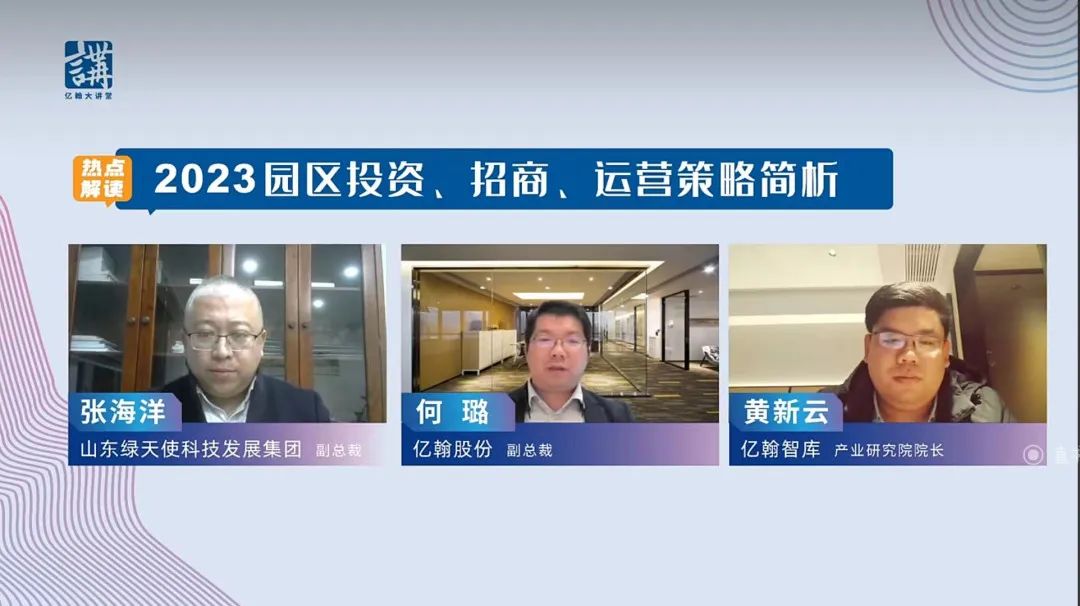 2023年2月27日,綠天使集團(tuán)副總裁張海洋先生受邀出席《億翰大講堂之月月談》2月特輯,并就“園區(qū)投資、招商、運(yùn)營(yíng)策略”與各領(lǐng)域?qū)<覍W(xué)者、行業(yè)同仁進(jìn)行分享交流。