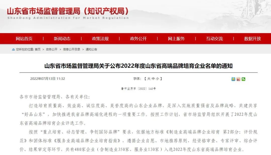 近日,山東省市場監管局公布了2022年度山東省高端品牌培育企業名單,綠天使集團入列其中,獲評山東省高端品牌服務業類培育企業。