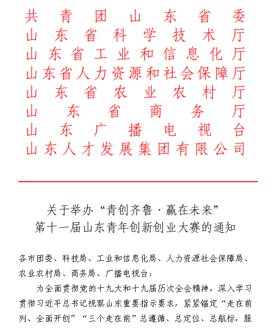 共青團山東省委、省科技廳、省工業和信息化廳、省人力資源社會保障廳、省農業農村廳、省商務廳、山東廣播電視臺、省人才發展集團。